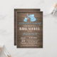 Carte bleue Invitation Baby shower éléphant avec Arrière - plan en bois rustique. Vintage Retro. Invitation Baby shower. Pour plus de personnalisation, cliquez sur le bouton "Customiser" et utilisez notre outil de conception pour modifier ce modèle.
