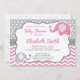 Avec un texte entièrement modifiable et une couleur d'accent modifiable, cette invitation au baby shower à thème d'éléphant doux est parfaite pour toute douche. (texte gris modifiable, éléments de conception gris non modifiables)