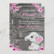 Invitation Baby shower Eléphant fille, rustique, r