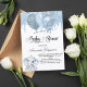 Pour un baby shower, célébrer un bébé garçon. Un arrière - plan blanc. Décoré avec des gouttes de faux parties scintillant bleu, l'air dérapant de peinture, des ballons et un mignon petit garçon d'éléphant. Personnalisez et ajoutez le nom de la mère à être le nom et les détails de la fête. Le nom et le texte : Baby shower sont écrits avec un script de style écrit à la main