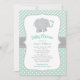 Invitation Baby-Shower Éléphant Gris Moderne Menthe