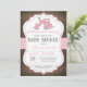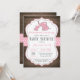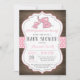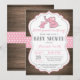 Rustic Elephant Baby shower Invitation rose et gris carte. Invitation Baby shower fille. Arrière - plan rustique en bois. Vintage Retro. Rose ruban. Pour plus de personnalisation, cliquez sur le bouton "Customiser" et utilisez notre outil de conception pour modifier ce modèle.