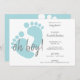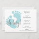 Élégantes et simples, ces invitations sont une excellente façon de célébrer la future maman. Le design comporte un ensemble bleu doux de pieds bébé sur l'avant avec du texte gris pour s'adapter à tous les détails du baby shower. Le dos est assorti à un arrière - plan bleu assorti à des empreintes de bébé blanches.