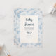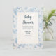 Cette élégante invitation au baby shower présente une motif de toile bleue intemporelle aux délicats accents floraux, posée sur un arrière - plan crème douce. Parfait pour les fêtes de baby shower traditionnelles, il offre un moyen sophistiqué et charmant pour les proches invitations. Customisez le texte pour le rendre unique. Idéal pour honorer l'arrivée d'un bébé garçon ou une fête neutre avec une touche classique.