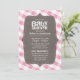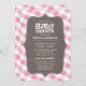Invitations : Les invitations rustiques inspirées du pays du Sud pour douche bébé, conçues avec vos détails de douche imprimés personnalisés dans le bronze clair et blanc sur une illustration de texture de toile marron, sur un motif en vichy rose et blanc. Cartes de remerciements correspondant (articles achetés séparément) :