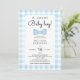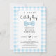 Baby shower bleu En vichy Invitation. Ce charmant design Bow En vichy Baby Boy Shower présente un joli design d'arc bleu en aquarelle contre un arrière - plan en vichy classique, créant une atmosphère rustique et confortable parfaite pour célébrer l'arrivée d'un bébé garçon. Cliquez sur personnaliser ce modèle pour ajouter vos propres informations. Designs SweetFind