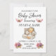 Bébé mignon blond habillé d'une robe blanche avec une ceinture fleurie et entouré de deux petits agneaux blancs. Un design bébé parfait pour un baby shower avec deux papillons rosés et deux bouquets avec hydrangées purpel. Cet article appartient à la COLLECTION ENFANT AVEC LAMBS.