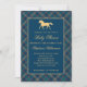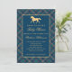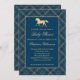 Classic Preppy Plaid Blue Equestrian Baby shower Invitation - Une invitation baby shower preppy, classique avec éléments équestres et plaid en marine, chasseur vert avec ton or et accents rouge bordeaux. Une silhouette de cheval coureur orne le sommet et la motif tartane ajoute une touche intemporelle. Parfait pour un baby shower à thème Vieux Argent avec une atmosphère classique, vintage et luxueuse. Si vous aimez le noyau grand-père, le style vintage est un grand invitation baby shower. Disponible en version imprimée et en téléchargement numérique. Customisez ce modèle d'invitation de baby shower modifiable avec vos propres détails d'événement.
