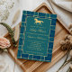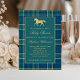 Une invitation au baby shower classique et preppy avec des éléments équestres et plaid en vert marine et chasseur avec des accents de ton or. Une silhouette de cheval coureur orne le sommet et la motif tartane ajoute une touche intemporelle. Parfait pour un baby shower à thème Vieux Argent avec une atmosphère classique, vintage et luxueuse. Si vous aimez le noyau grand-père, le style vintage est un grand invitation baby shower. Disponible en version imprimée et en téléchargement numérique. Customisez ce modèle d'invitation de baby shower modifiable avec vos propres détails d'événement.