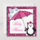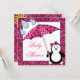 Invitation Baby shower féminin Doodle Penguin