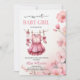 Fêtez l'arrivée prochaine d'une petite fille douce avec cette adorable invitation baby shower ! Doté d'un charmant étendoir orné d'une robe rose, de minuscules chaussettes et de mignons petits arcs, ce design est agrémenté de fleurs roses douces pour une touche féminine et fantaisiste. Les tons pastel et les détails délicats créent une atmosphère chaleureuse et accueillante, idéale pour un baby shower à thème printanier ou fleuri. Personnalisez avec vos détails de l'événement et faites-en un souvenir que vos invités aimeront!