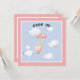 invitations baby showers avec une petite fille tenant un parapluie rose, flottant au-dessus des nuages d'animaux.