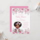 Fêtez l'arrivée à venir avec notre adorable invitation baby shower, avec une adorable petite fille afro-américaine. Elle a un doux et une expression, et elle est habillée d'une jolie robe rose et blanche avec un arc-en-cheveux assorti et des chaussures sur un joli arrière - plan floral aquarelle. Parfaitement conçue pour capturer l'essence d'une occasion joyeuse, cette invitation est idéale pour tout baby shower fille. Customisez facilement et faites de votre journée spéciale une journée encore plus mémorable. Ajoutez simplement les détails de votre événement dans le style de police, le libellé et la couleur de police de votre choix. Vous pouvez également modifier la couleur de l'arrière - plan à l'arrière.
