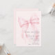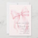 Charmant, féminin et d'un style sans effort, cette invitation pour une baby shower présente un élégant nœud rose à l'aquarelle qui apporte une touche douce et festive au design. L'illustration de ruban fluide crée un point focal doux tandis que la mise en page moderne et épurée garde l'invitation élégante et facile à lire.