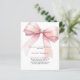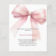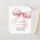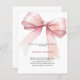 Un élégant arrière - plan blanc, décoré d'un grand arc rose. Personnalisez et ajoutez un nom et des détails du parti. 1 feuille = 1 invitation imprimé bord à bord.