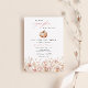 Invitation baby shower sur le thème de la citrouille. Le design comprend un citrouille avec des fleurs roses et du feuillage. Personnalisez avec vos informations ou cliquez sur "Cliquez pour customiser plus loin" pour modifier les styles, la taille et les couleurs des polices.