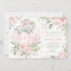 Invitation Baby shower Fille Eléphant rose Blush Or Fleurs