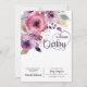 Collection de Baby Shower Florale Boho Aquarelle 'Bébé en Fleur', mélange de violet élégant, violet, rose, vert avec une calligraphie mignonne idéale pour les baby showers de bébé fille et bébé garçon.