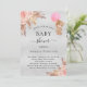 Pour un baby shower de style boho moderne. Un arrière - plan faux argenté. Décoré de fleurs roses d'or et de rose, de roses, d'herbe de pampas et d'une nana en peluche tenant un ballon rose. Personnalisez et ajoutez un nom et des détails du parti.