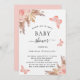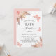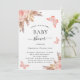 Pour un baby shower de style boho moderne. Un arrière - plan blanc à l'avant. Décoré de fleurs roses d'or et de rose, de roses, d'herbe de pampas et de papillons. Personnalisez et ajoutez un nom et des détails du parti. Dos : arrière - plan rose vif et papillon.