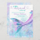 Cartons d'invitation Baby Shower Sirène avec une belle queue de sirène et un fond sous la mer. Ce carton d'invitation Baby Shower Sirène est facilement personnalisable avec vos détails.
