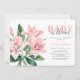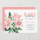 Elégant bébé floral en Fleur invitation à la douche bébé fille. Le design présente de magnifiques lys rose vif et de la verdure. Utilisez les outils de conception pour customiser le texte et les polices. Aussi disponible en téléchargement numérique.