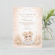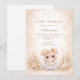 Un design de baby shower doux et élégant mettant en vedette un adorable lapin entouré de florales neutres délicates et de textures botaniques aériennes. Le fond aquarelle beige chaud et l'arrangement floral doux créent une esthétique de nurserie calme et intemporelle avec une atmosphère de livre d'histoires sucré. Des tons neutres subtils et des détails délicats donnent au design une sensation raffinée, cosy et neutre en termes de genre. Parfait pour une baby shower sur le thème beige ou neutre avec une atmosphère douce inspirée des bois.
