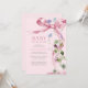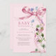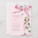 Elégant Bow Ribbon Fleur sauvage rose Baby shower Invitation Rose Floral Bow Fleur sauvage Baby shower Cette élégante invitation présente un bel arc rose, des fleurs sauvages délicats d'aquarelle et une typographie classique.