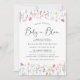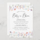 Cette élégante invitation au baby shower sans distinction de genre présente des aquarelles de fleur sauvage et "Baby in Bloom" écrites dans un script contemporain élégant.