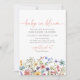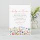 Invitations amis et famille pour célébrer l'arrivée d'un bébé doux avec cette élégante invitation fleur sauvage de printemps baby shower, avec des fleurs sauvages d'aquarelle dans les tons pastel.