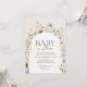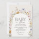 Invitations amis et famille pour célébrer l'arrivée d'un bébé doux avec cette élégante invitation fleur sauvage de printemps baby shower, avec des fleurs sauvages d'aquarelle dans les tons pastel muets.
