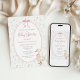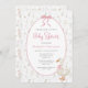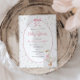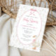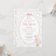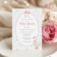 Cette élégante invitation au baby shower allie charme vintage avec des fleurs douces et une oie ludique dans un arc rose. Parfait pour une fête de petite fille, les accents fleur sauvage peints à la main et le design classique apportent une atmosphère chaleureuse et intemporelle à votre journée spéciale.