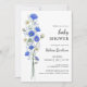 Invitation Baby shower Fleur sauvage Élégant Bleu Et Blanc