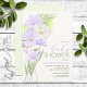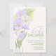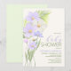 invitations à la douche bébé à thème fleur sauvage à thème doux et d'été violet et blanc.