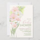 invitations à la douche bébé à thème fleur sauvage rose et blanc sucré et estival.