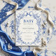 Invitation baby shower fleuri vintage Coquette Blue Bow