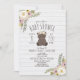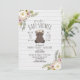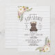 Invitation Baby Shower Fleuris Bohème Ours Gris Bois