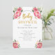 Invitation Baby shower Fleurs d'aquarelle Fille Pink Peonies