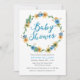 Invitation baby shower avec tête en lettres et jolies fleurs d'aquarelle bleue.