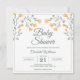 Elégant orange (jaune ou or) et sauge vert baby shower invitation avec des fleurs délicates d'aquarelle. Personnalisez-le avec les détails de votre fête pour célébrer la future maman.