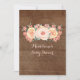 Invitations de douches bébé personnalisées avec motif rustique en bois brun et pêche et couleur rose vif fleurs vintages. Parfait pour un baby shower de printemps ou d'été.