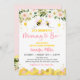 Cette invitation présente de mignonnes bees bourdonnantes avec de la verdure et des faux confettis et des peignes de miel en feuille d'or.