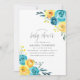 Invitation de baby shower neutre garcon fille turquoise et jaune - sarcelle et floral lemon avec des accents de corail avec des fleurs et du feuillage aquarelle.