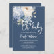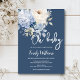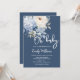 Invitation Baby shower floral bleu et blanc poussiéreux