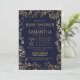Elégant, moderne et chic faux or et motif floral bleu marine à la mode, invitation Baby Shower. Ce design classique et sophistiqué est parfait pour une maman classe, branchée et élégante. Personnalisez avec votre propre message sur le devant et un monogramme customisé sur le dos. Toute la conception d'impression photo.