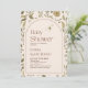 Fêtez l'arrivée d'un nouveau petit avec notre magnifique Invitation Baby shower Floral! Ce design vert à thème bohème présente un élégant mélange de feuilles brun et vert, parfait pour accueillir une petite fille dans le style. Qu'il s'agisse d'organiser un rassemblement non sexiste ou un baby shower de couple, cette invitation allie charme rustique et verdure, ce qui en fait un lieu idéal pour les parents amateurs de nature.
