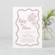 Bienvenue à vos invités dans le style avec cette élégante invitation baby shower "Baby in Bloom". Doté d'un délicat bouquet floral dessiné à la main et d'une douce bordure rose ondulée, ce design donne le ton parfait pour une fête douce et mémorable. Le mélange de scénario ludique et de typographie classique apporte une touche sophistiquée, ce qui en fait l'endroit idéal pour les douches à thème printanier ou floral Facilement personnalisable avec tous les détails importants de l'événement, cette invitation est parfaite pour honorer la maman d'être d'une belle floraison, des douches de brunch, ou toute célébration pleine d'amour et de fleurs.