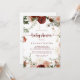 Cette invitation au baby shower floral couleur or rustique est parfaite pour un baby shower simple. Le design est composé de marsala peinte à la main, de rose, de rougeur, de bordeaux et de fleurs dorées avec des feuilles verts disposés en de belles couronnes.