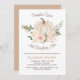 Une citrouille blanche aquarelle entourée de roses blush et de feuillage frais avec arrière - plan beige sur invitation.