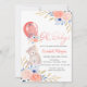 L'invitation au baby shower mignonne comprend un ours en peluche et un ballon avec baby shower de fleurs. Ces invitations de douches pour bébés sont facilement customisées pour votre événement en ajoutant simplement vos détails.